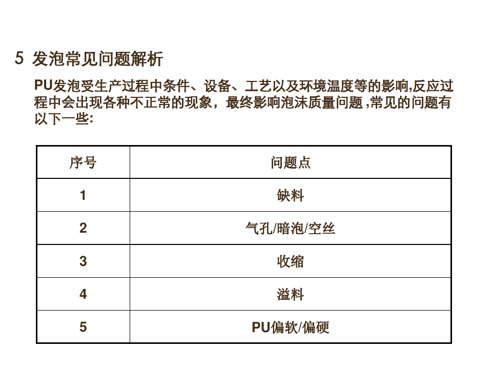 PU發(fā)泡常見問題分析圖PU發(fā)泡受生產(chǎn)過程中條件、設(shè)備、工藝以及環(huán)境溫度等影響,反應(yīng)過程中會出現(xiàn)各種不正常的現(xiàn)象,最終影響泡沫質(zhì)量問題,常見的問題有以下: PU地毯脫模劑MK-4036W由多種蠟和特殊離型成分復(fù)配而成,高固含量,主要用于汽車天窗、車頂板、地毯等產(chǎn)品,尤其適用于熱模壓成型。 產(chǎn)品特點 1、不含有害溶劑和重金屬物質(zhì),如烷基酚、胺、增塑劑、汞、鎘、鉛等,在使用中減少了有害氣體的蒸發(fā); 2、脫模性能優(yōu)越; 3、在模具中極輕微的脫模劑堆積; 4、產(chǎn)品表面效果好、完整、無油漬; 東莞市美雅化工有限公司20多年專注高端脫模劑研發(fā)和生產(chǎn)、輔料供應(yīng),助您買到環(huán)保好用的脫模劑產(chǎn)品。 全國脫模劑咨詢熱線:0769-22623512 更多脫模劑資訊請瀏覽官網(wǎng):http://ucct.cn 櫻井脫模劑(一個集復(fù)合材料、壓鑄、聚氨酯、金屬、橡膠、EVA、PU等行業(yè)領(lǐng)域于一體的綜合性專業(yè)采購脫模劑平臺) |
